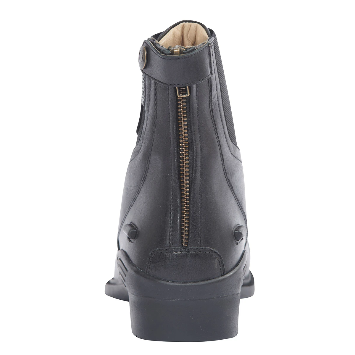 - leren lus met drukknoop aan de achterkant van de jodhpurs