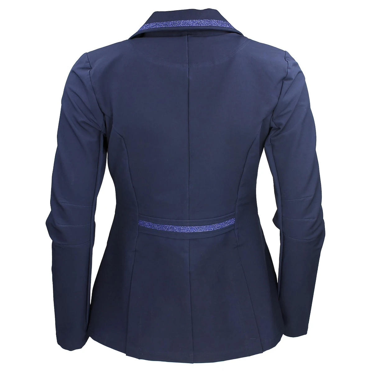 - rond de kraag, zakken en band op de rug is het jasje versierd met luxe glinsterende biesjes