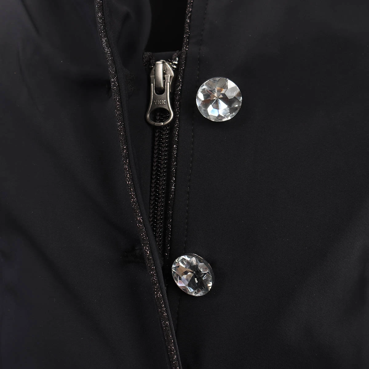 - schitterende diamantvormige knopen op de voorkant met een verborgen YKK ritssluiting