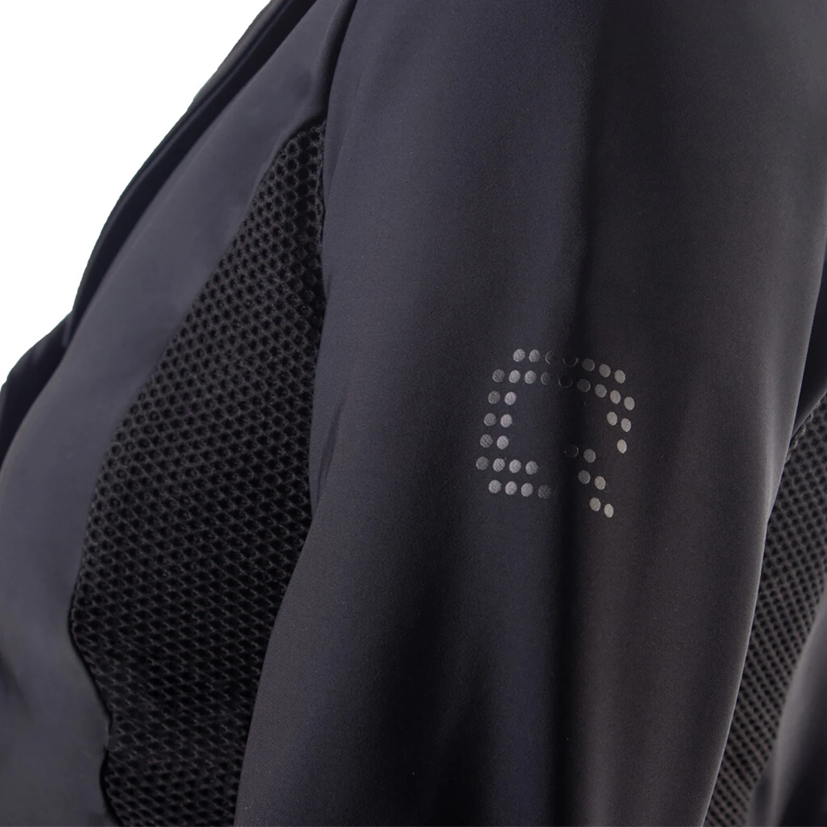 - luchtige inzetten van mesh stof bij de kraag, onder de armen, op de rug en aan de zijkanten