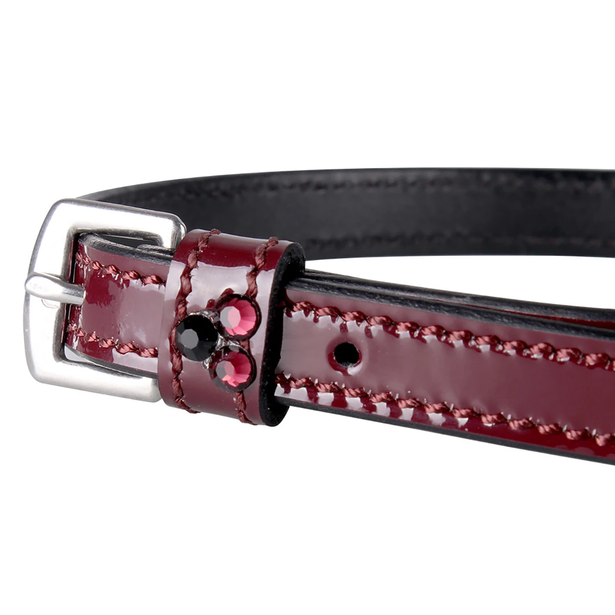 - afgewerkt met drie luxe Stellux steentjes in bordeaux en zwarte kleur