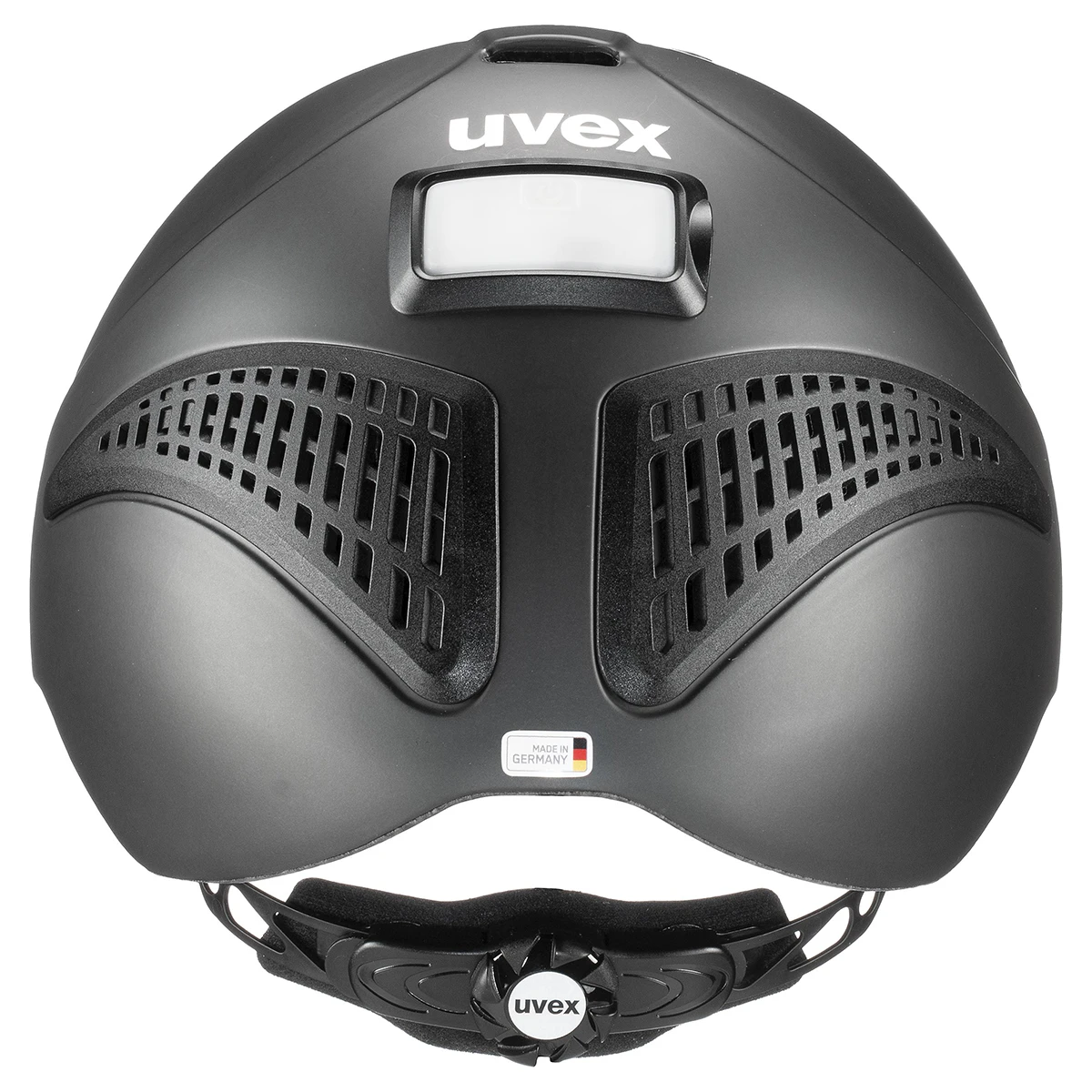 - de veiligheidshelm is voorzien van een verlengde extrene schaal aan de achterkant, die zorgt voor extra bescherming tot aan de achterkant van het hoofd van de ruiter