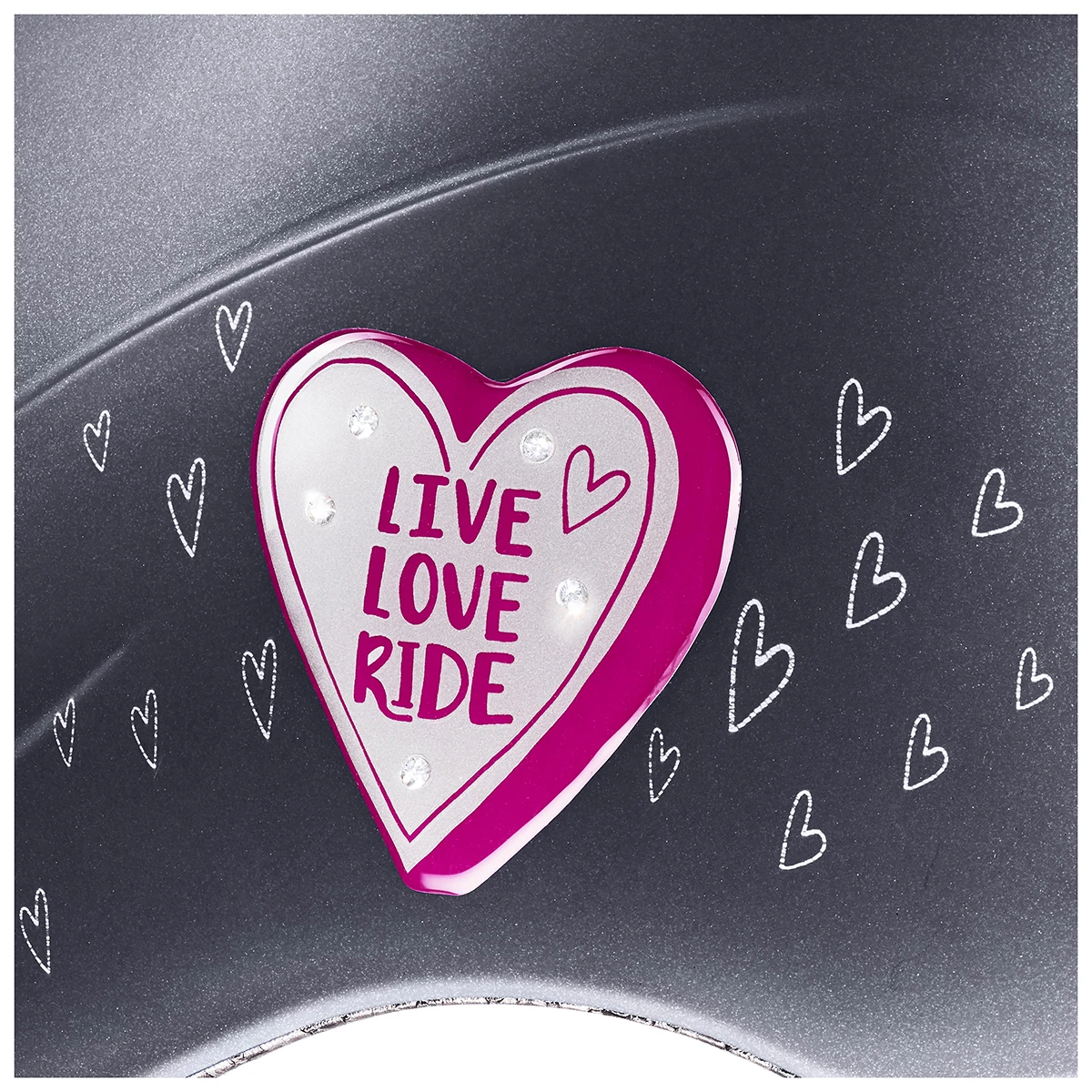 - voorzien van schattige hartjes op de zijkanten met Live, Love, Ride tekst